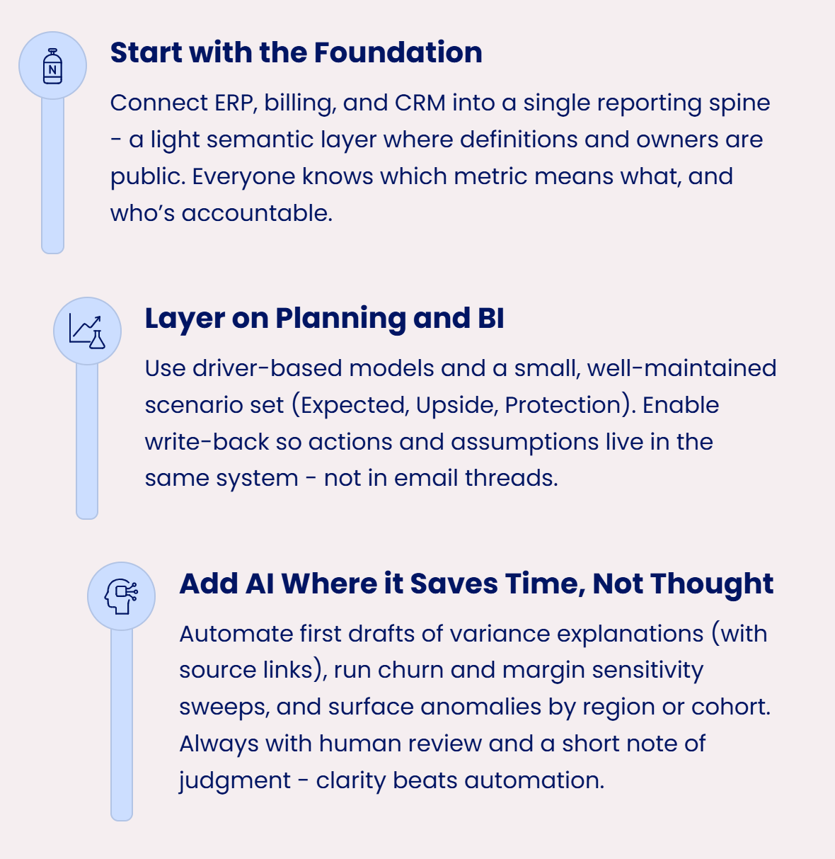 When data, process, and rhythm are aligned, the finance stack becomes a feedback system, not a filing cabinet.
