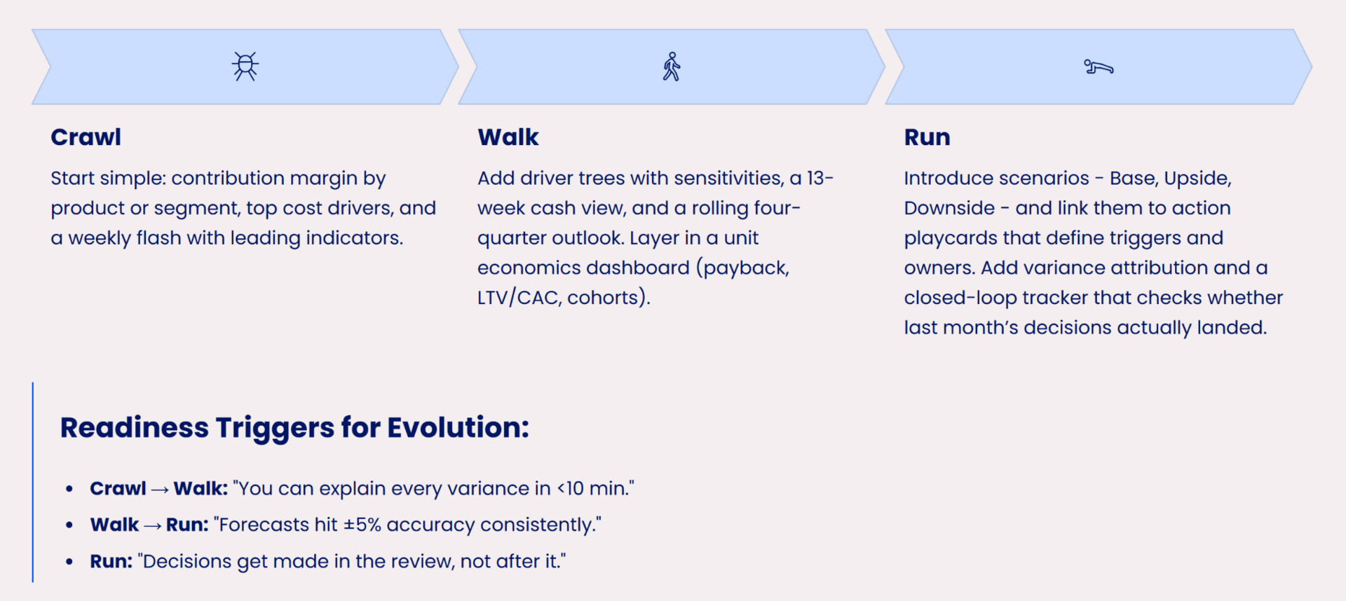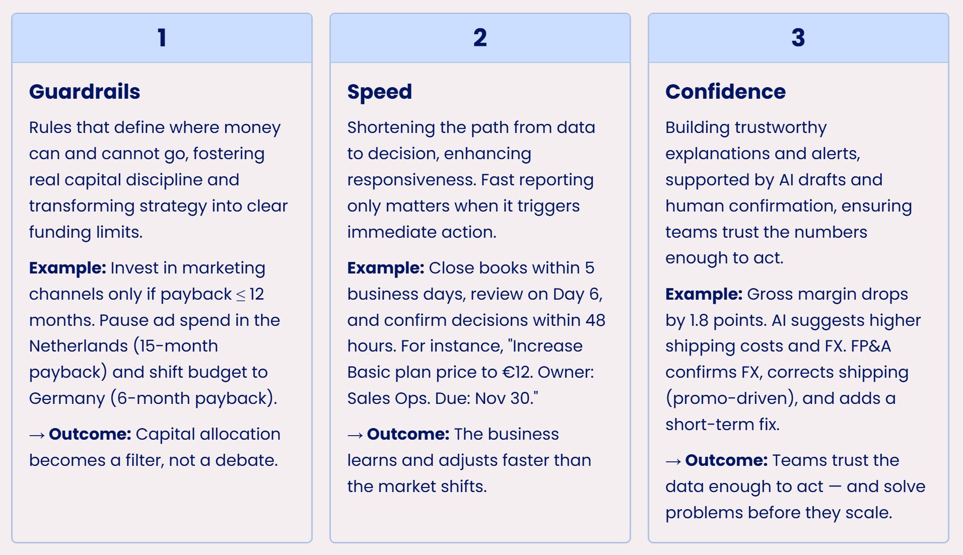 It becomes the operating drumbeat of the company - the CFO’s system for turning insight into execution.