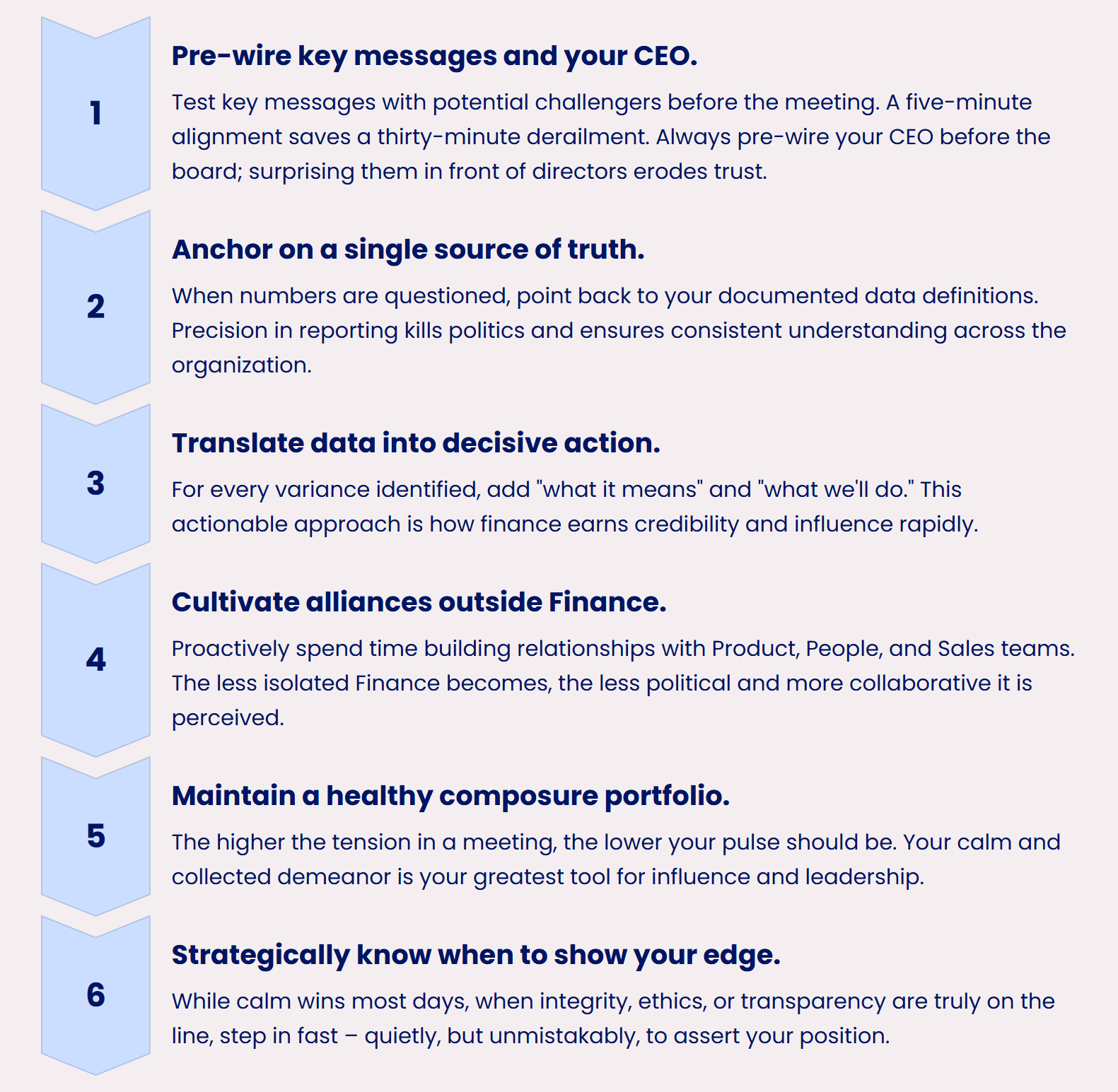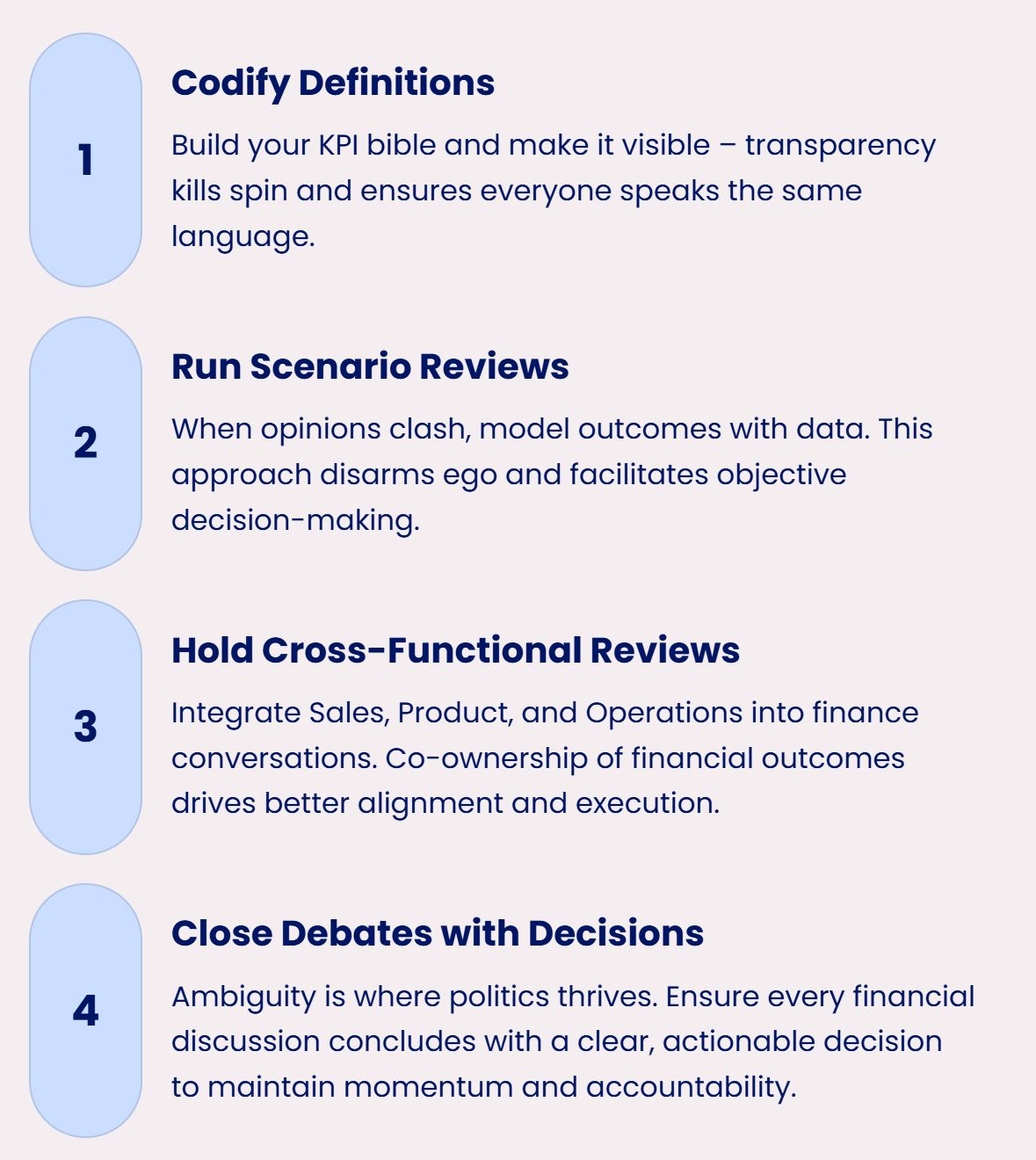 Politics fade when numbers speak clearly. That’s why great CFOs turn influence into structure - through process, language, and data.